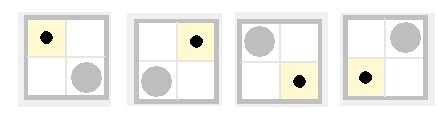 Начальное положение: Робот может находится как в левом, так и в правом углу «коридора». Длина «коридора» — 5 клеток. В середине «коридора» есть «проход». Робот должен закрасить клетки сверху и снизу «прохода».
