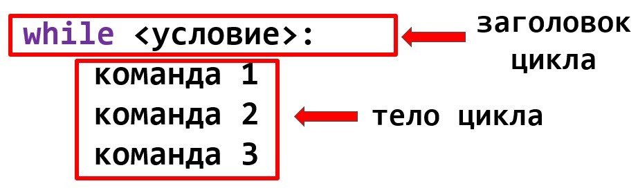 Строка while <условие>: является заголовком цикла. Эту строку можно прочитать следующим образом: «Пока верно условие, делай».