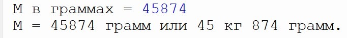 Задание 4. Дана масса m в граммах. Переведите её в килограммы и граммы. Значения переменной m вводятся с клавиатуры.