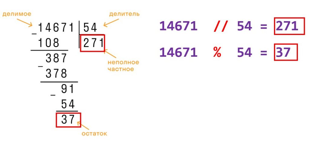 7 // 3 = 2, т.к. 7/3 = 2.333 — ближайшее целое число, не большее 2.3 — это число 2.